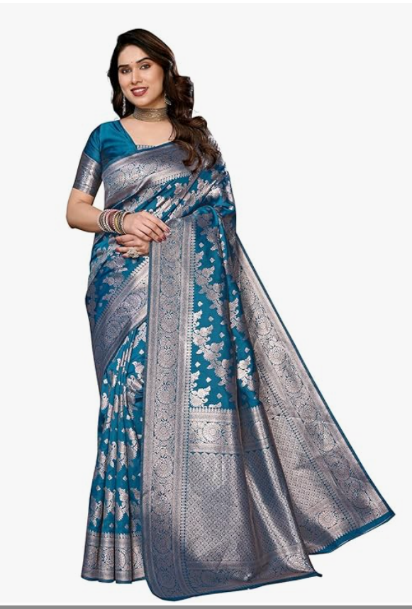 - Intricate Weaving Patterns: Features traditional Banarasi and Kanjivaram-inspired weaving designs, adding a touch of heritage and sophistication to your wardrobe for festive and formal occasions.